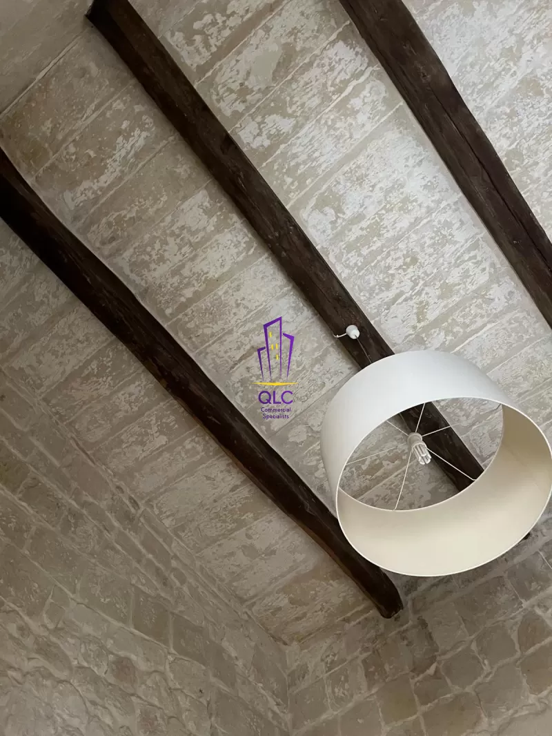 The main house ground floor (circa 175 sqm) features an entrance hall leading to a lateral room and guest WC, a staircase, lobby, and a large central reception room opening onto the central courtyard and the interconnected one-bedroom unit. A kitchen and an independent yet interconnected dining room are also located at this level, providing excellent flow for entertaining or hospitality use.